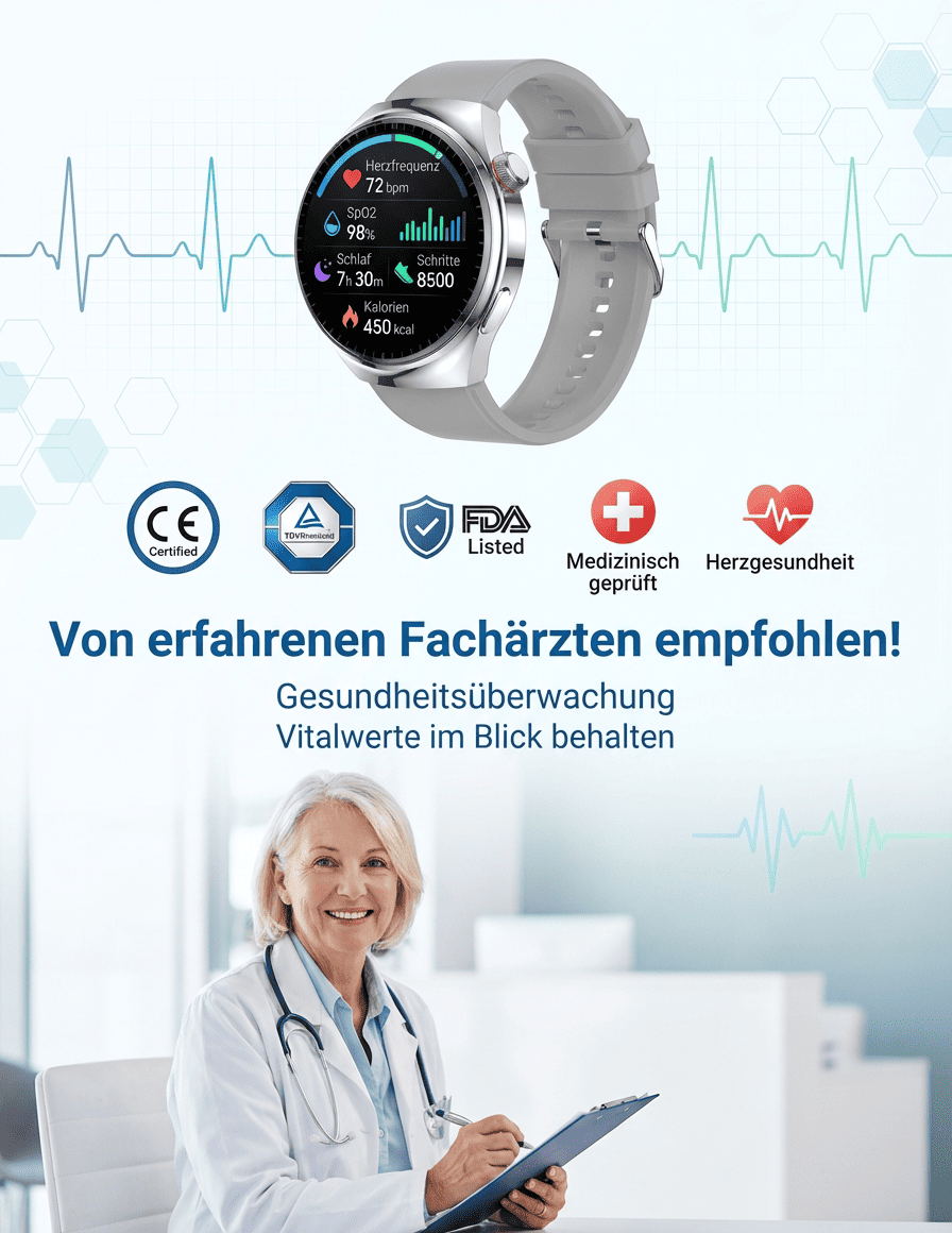 【Von Ärzten empfohlen】Die neueste Generation der Smart-Health-Watch!Messungen lebenslang kostenlos!